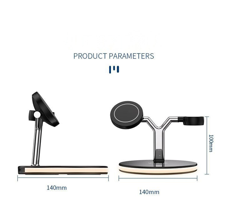 The 3 in 1 Magnetic Wireless Charger, powered from only one outlet, Charger(15W) Apple Watch Charger(5W), and AirPods(5W) at the same time. just put them on; All of this will make your desk clean and tidy, help you end the mess cords life.